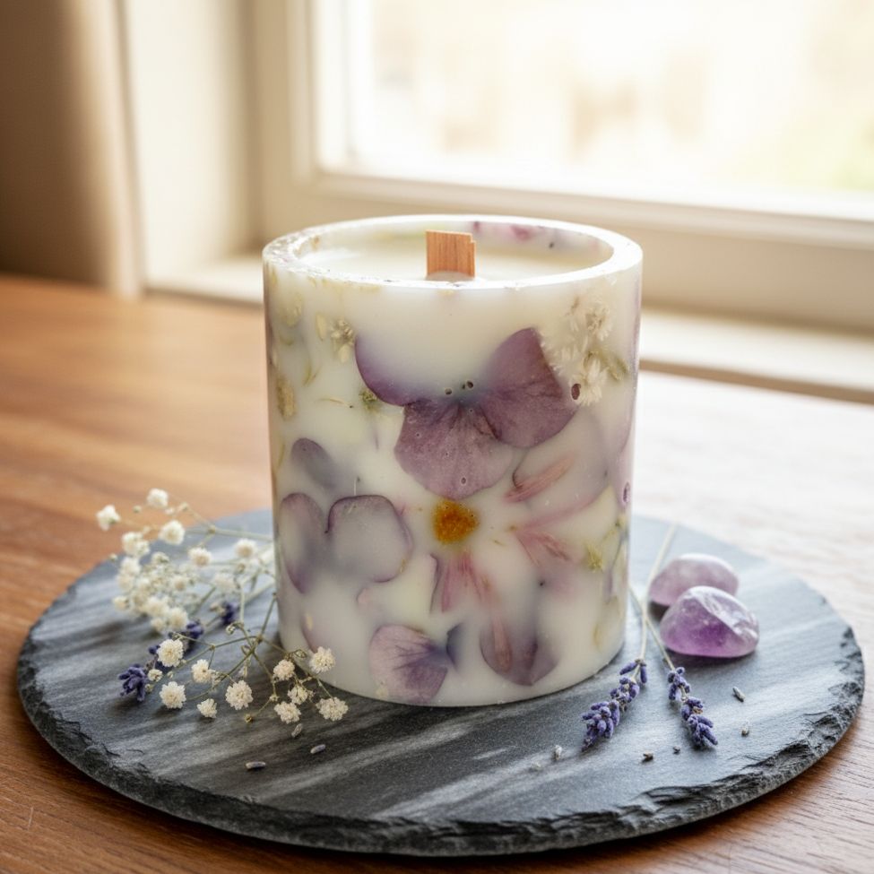 "Аметистовая гортензия" - это изысканная ботаническая аромасвеча, которая перенесет вас в мир нежности и сладости. Нежные лепестки гортензии придают свече неповторимый шарм и элегантность, а аромат... Ммммм... Насыщенные ноты спелой черной малины переплетаются с теплой, обволакивающей ванилью, создавая гармоничное и чувственное звучание. Этот аромат идеально подходит для расслабляющего вечера, романтического ужина или просто для того, чтобы наполнить ваш дом ощущением комфорта и роскоши.