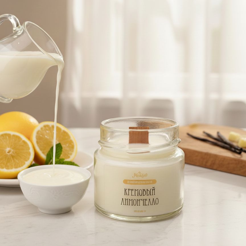 Солнце, лимон и нежность сливок – все это в одной свече "Кремовый Лимончелло"! Это как кусочек Италии, который всегда под рукой! Свежий цитрус переплетается с нежными сливочными нотами - идеально для создания уюта и расслабления. Зажгите эту свечу и позвольте себе насладиться моментом dolce vita.