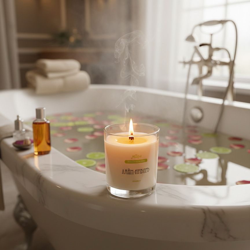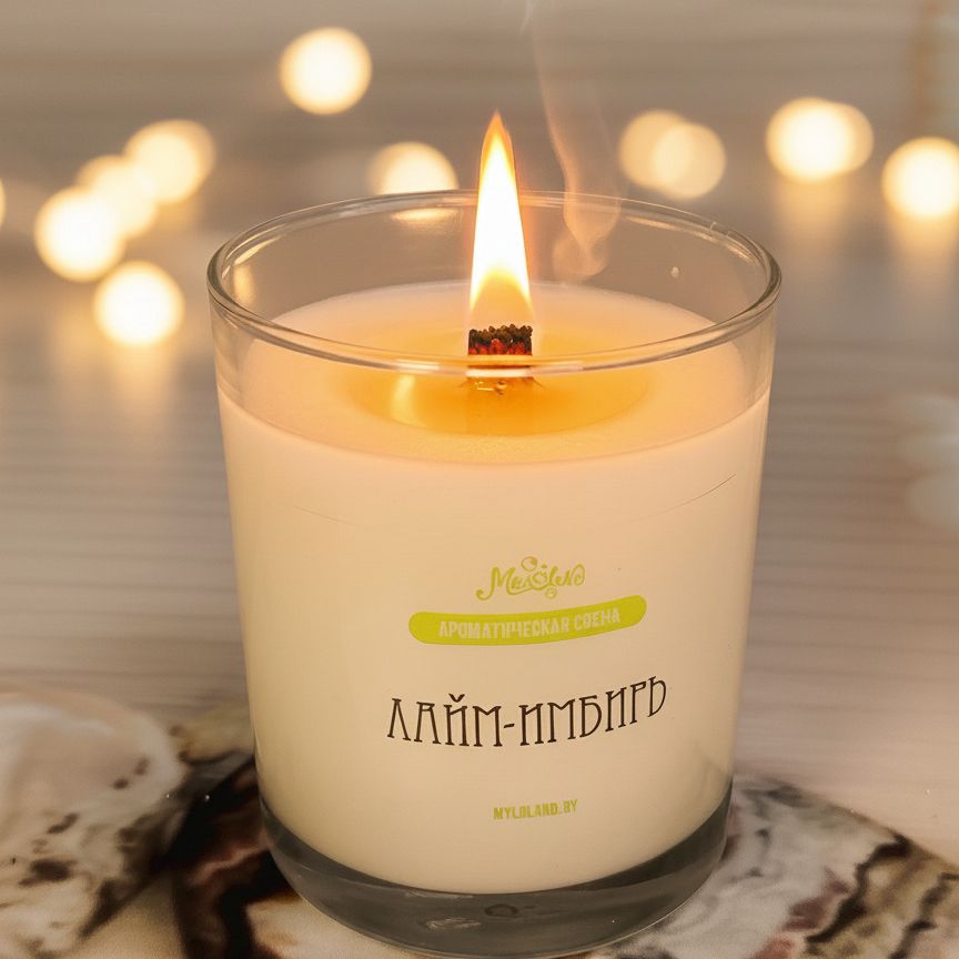 Ароматическая свеча "ЛАЙМ-ИМБИРЬ" из натурального 100% соевого воска.