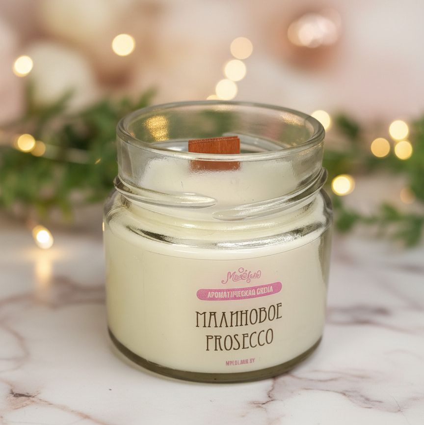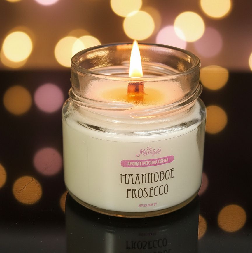 Какой напиток ассоциируется у вас с праздником? Позвольте себе отвлечься от повседневности. Ароматическая свеча "Малиновое-Prosecco" поможет в этом.