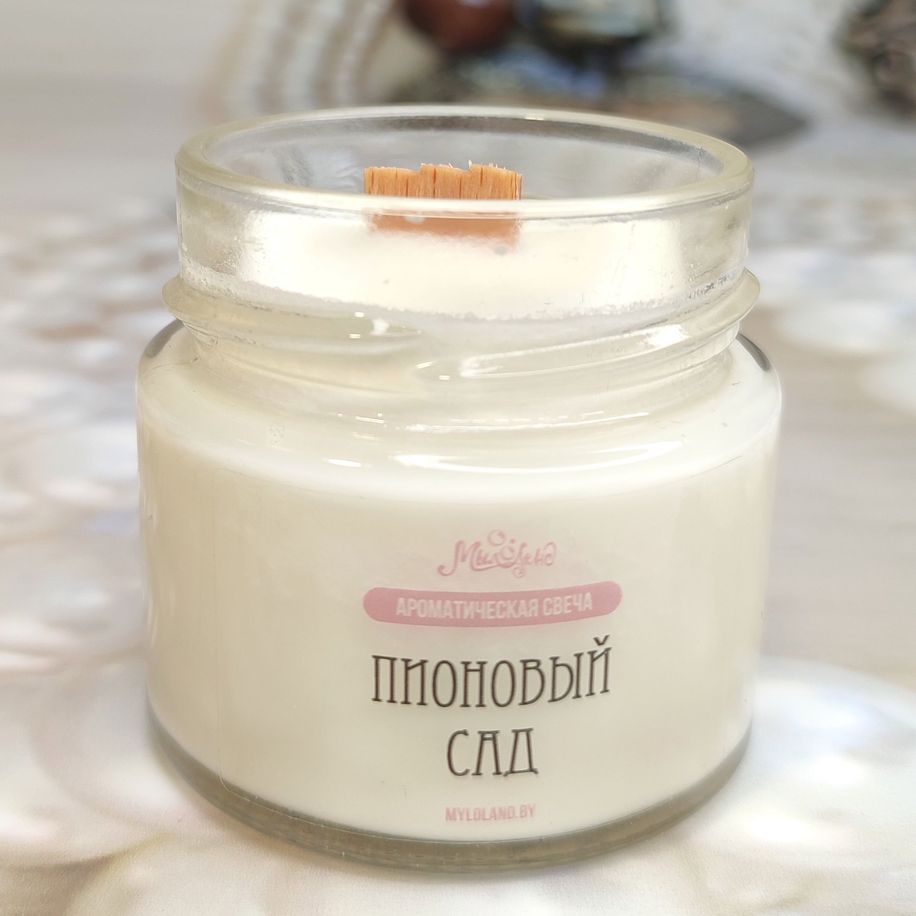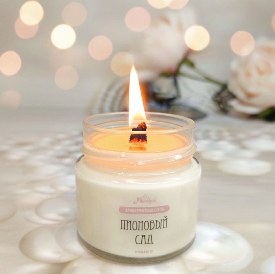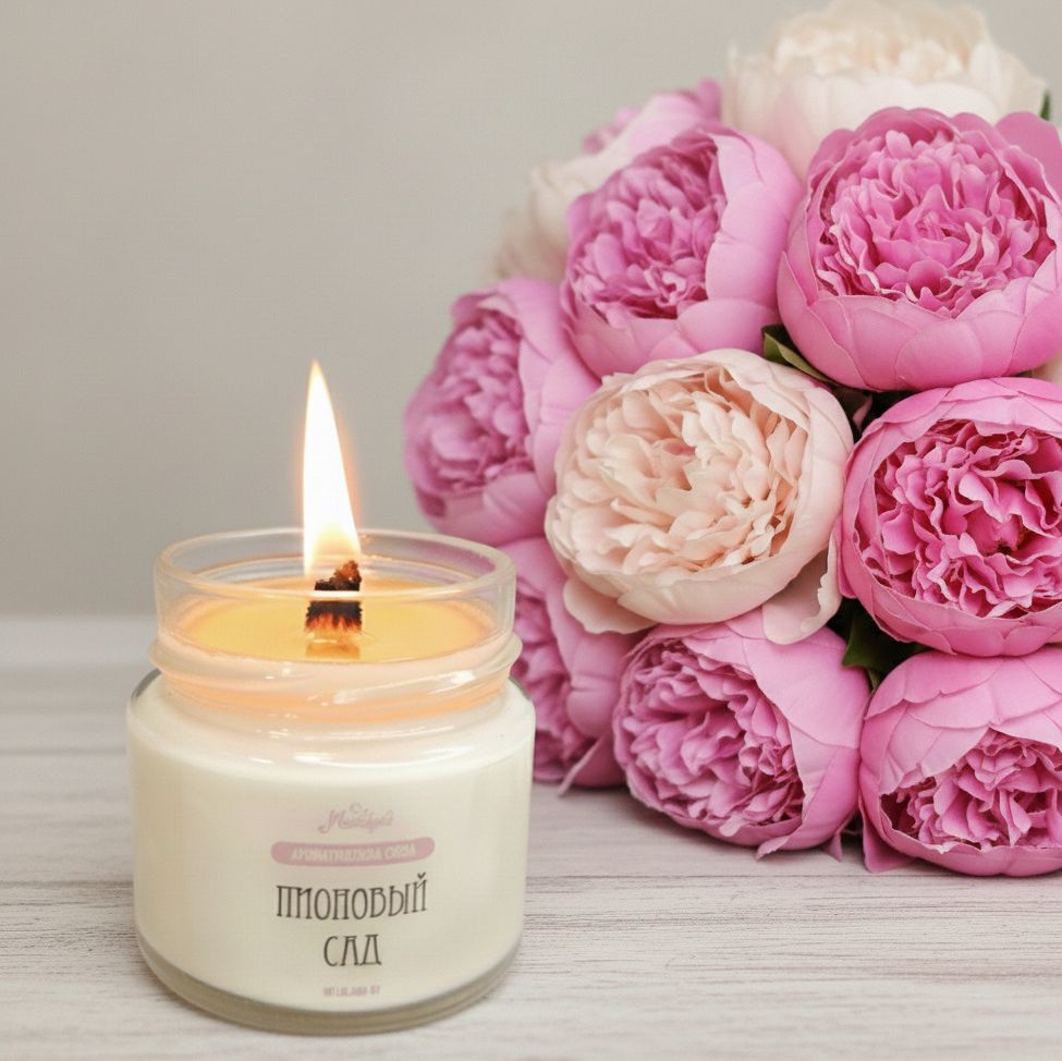 Ароматическая свеча "ПИОНОВЫЙ САД" из натурального 100% соевого воска.