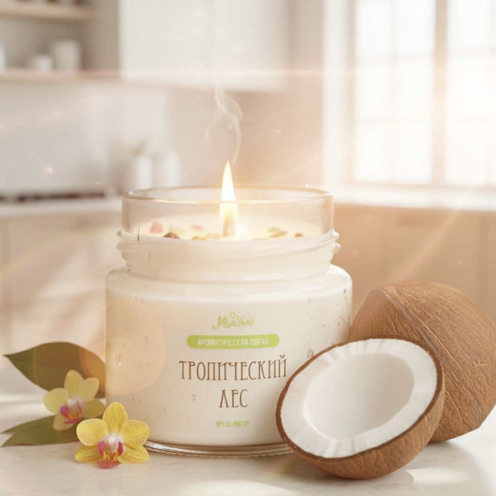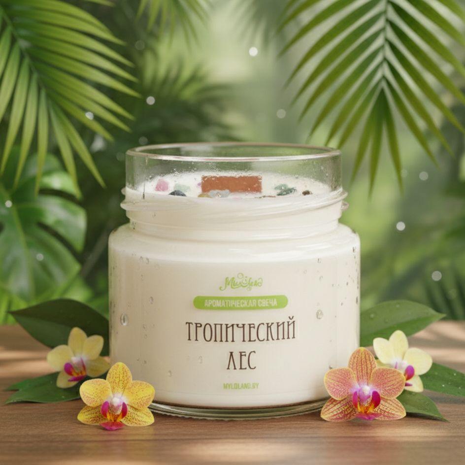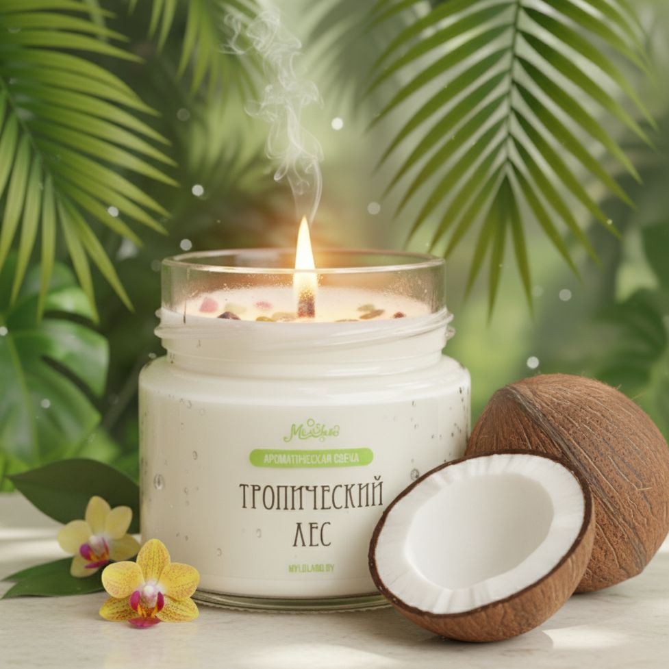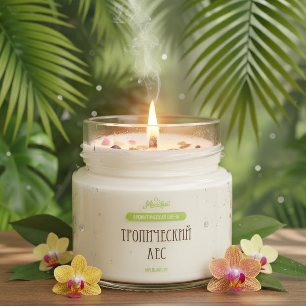 Ароматическая свеча "ТРОПИЧЕСКИЙ ЛЕС" из натурального 100% соевого воска.