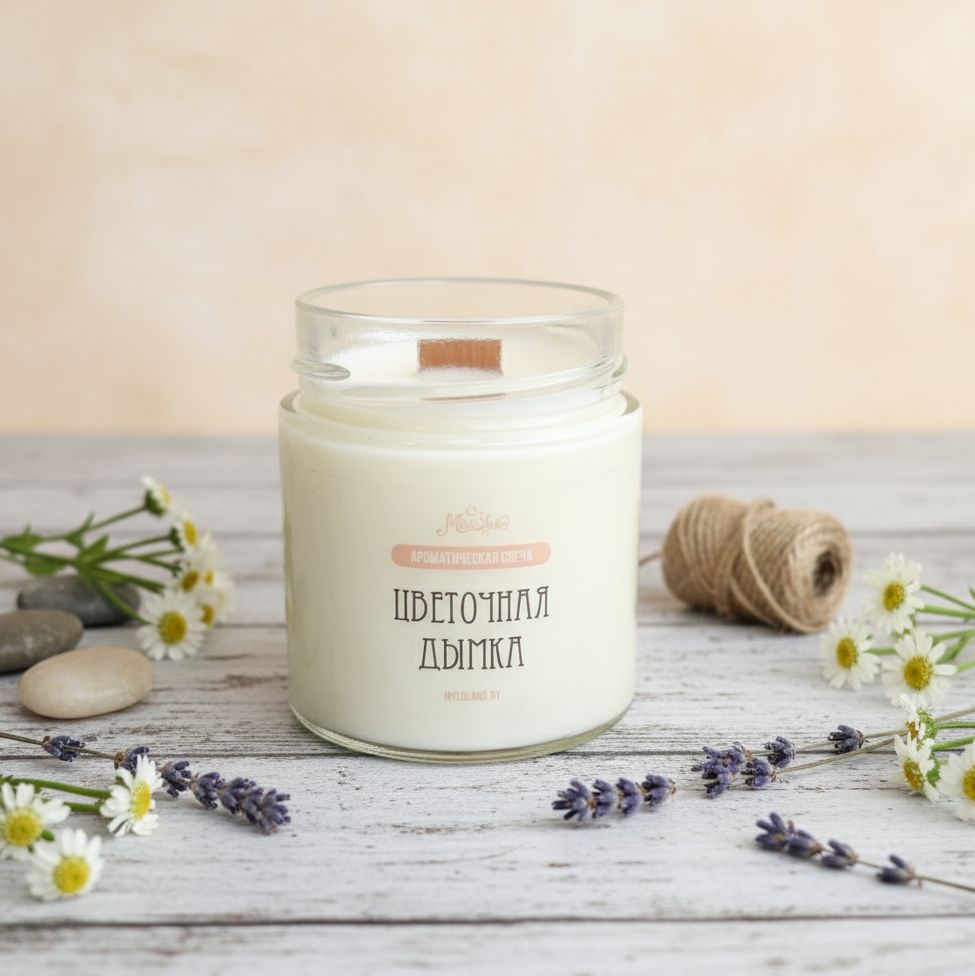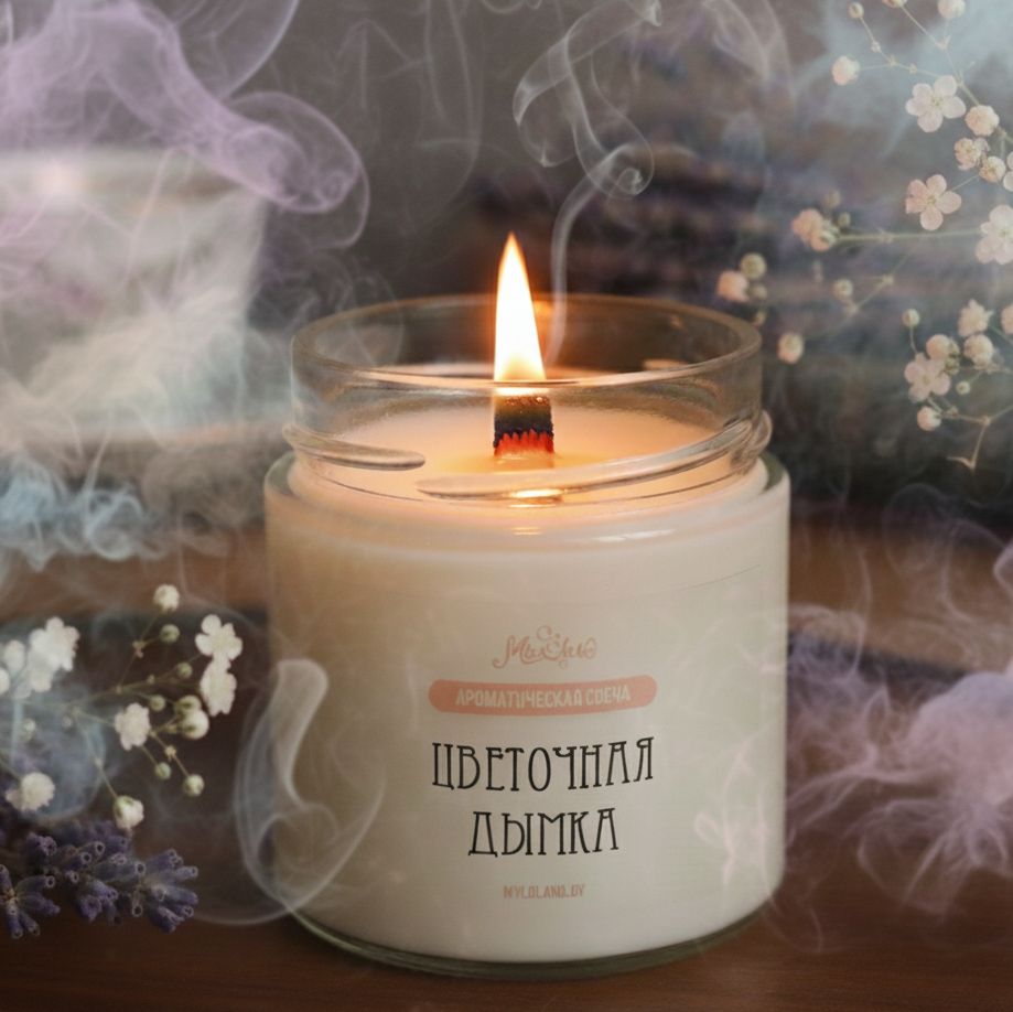 "Цветочная дымка" - это не просто свеча, это настроение. Погрузитесь в атмосферу релакса и наслаждения. Идеально для вечера с книгой, расслабляющей ванны или просто для создания уютной обстановки в вашем доме.