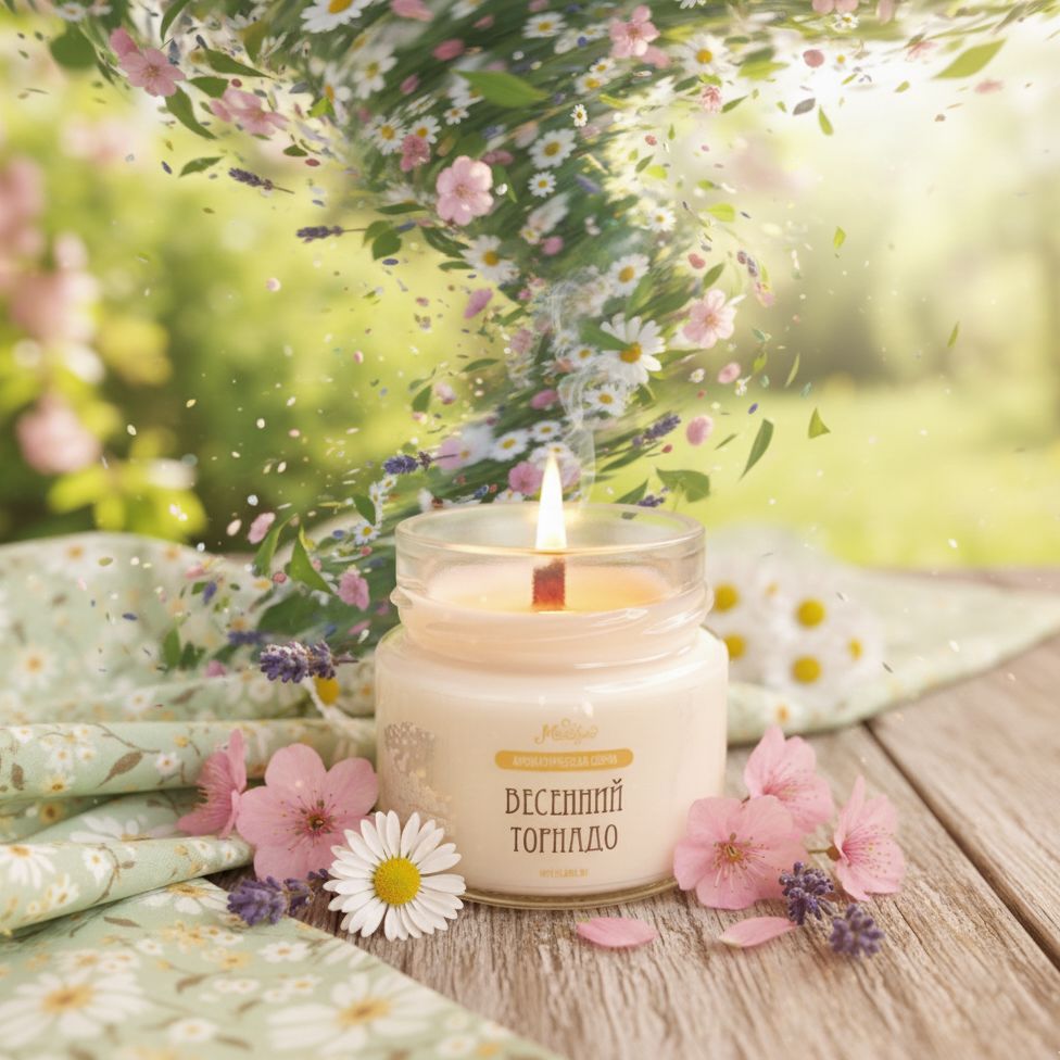 Ароматическая свеча "ВЕСЕННИЙ ТОРНАДО" из натурального 100% соевого воска.