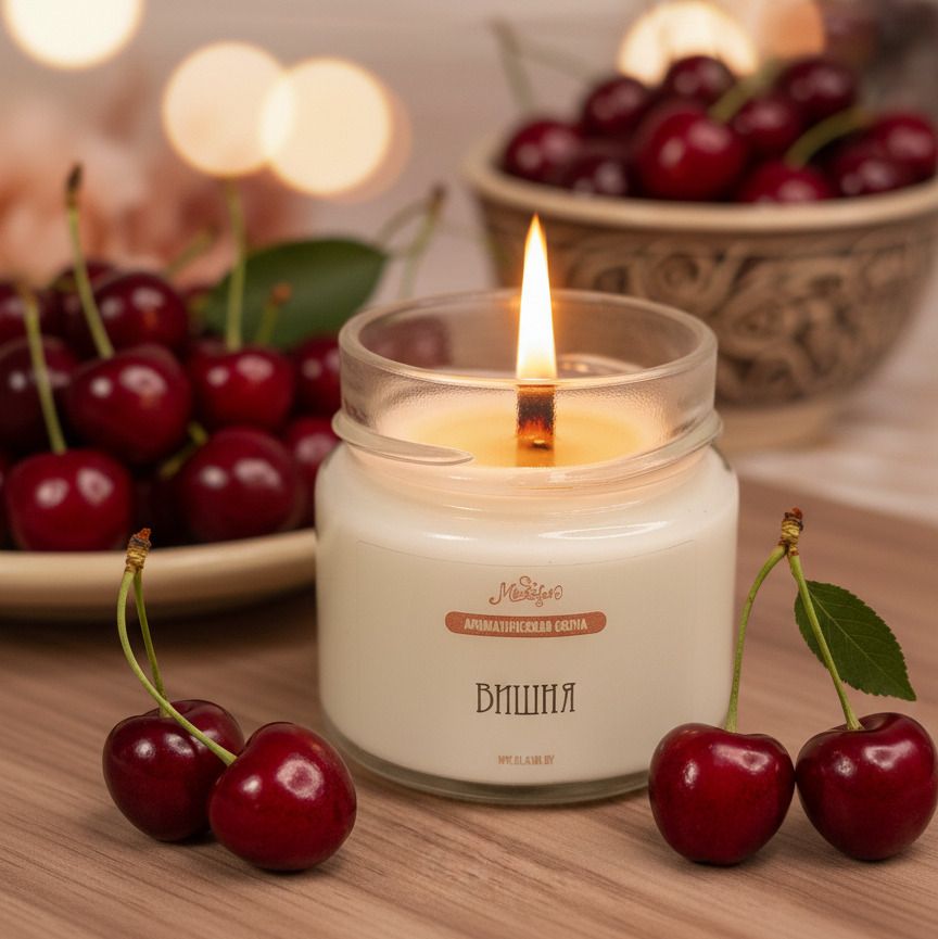 Эта свеча - настоящее воплощение лета: сочная, спелая вишня в сочетании с терпкими нотками вишневой косточки. Ощутите настоящий, глубокий и долгоиграющий аромат, который преобразит ваше пространство.