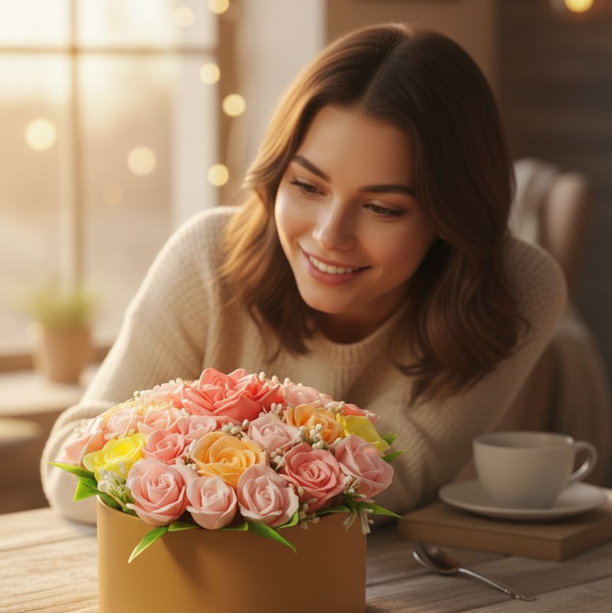 Букет "Эдем" – где каждая роза шепчет о нежности! Настоящее украшение для любого интерьера. Реалистичные розы в нежной цветовой палитре, которые будут радовать глаз гораздо дольше обычных цветов. Идеально подойдёт для любого случая – дня рождения, юбилея, 8 Марта или просто чтобы сказать "люблю" или "спасибо".