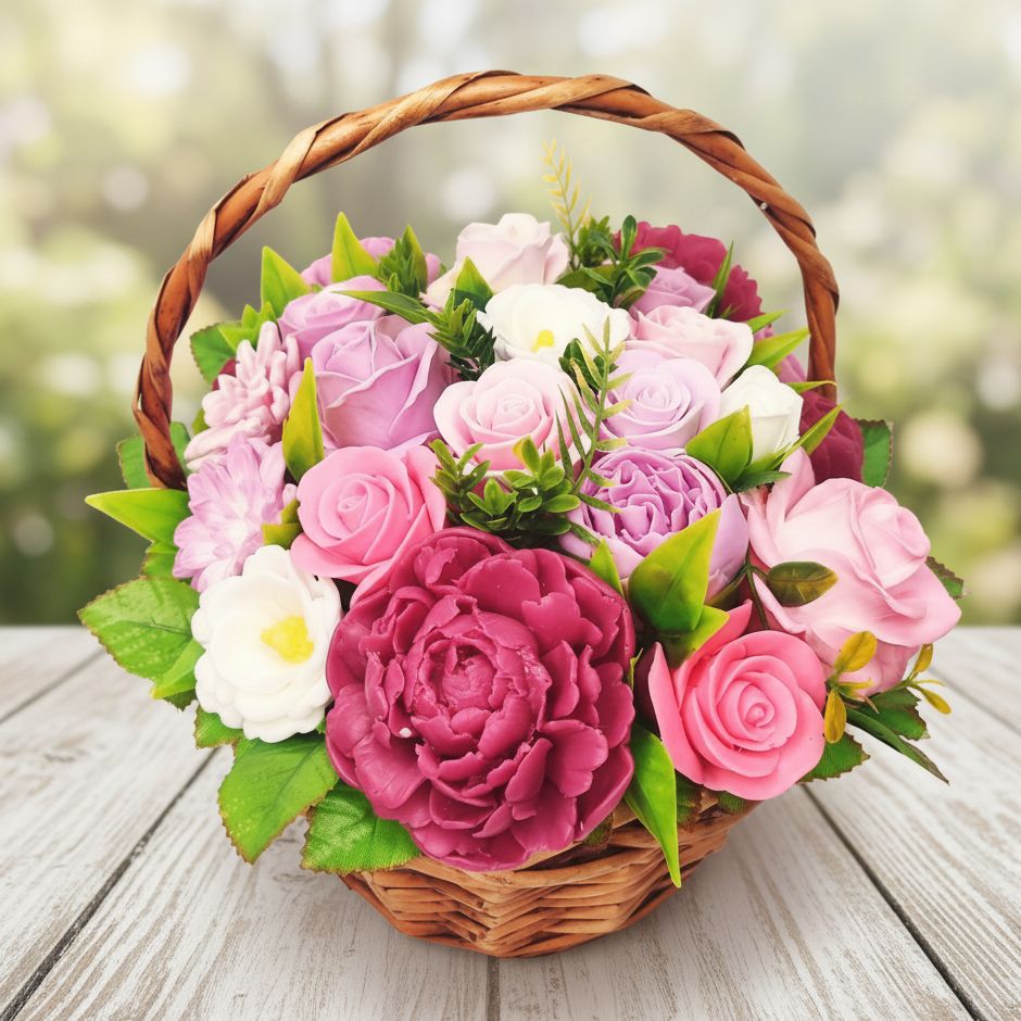 21 мыльная роза в большой корзине