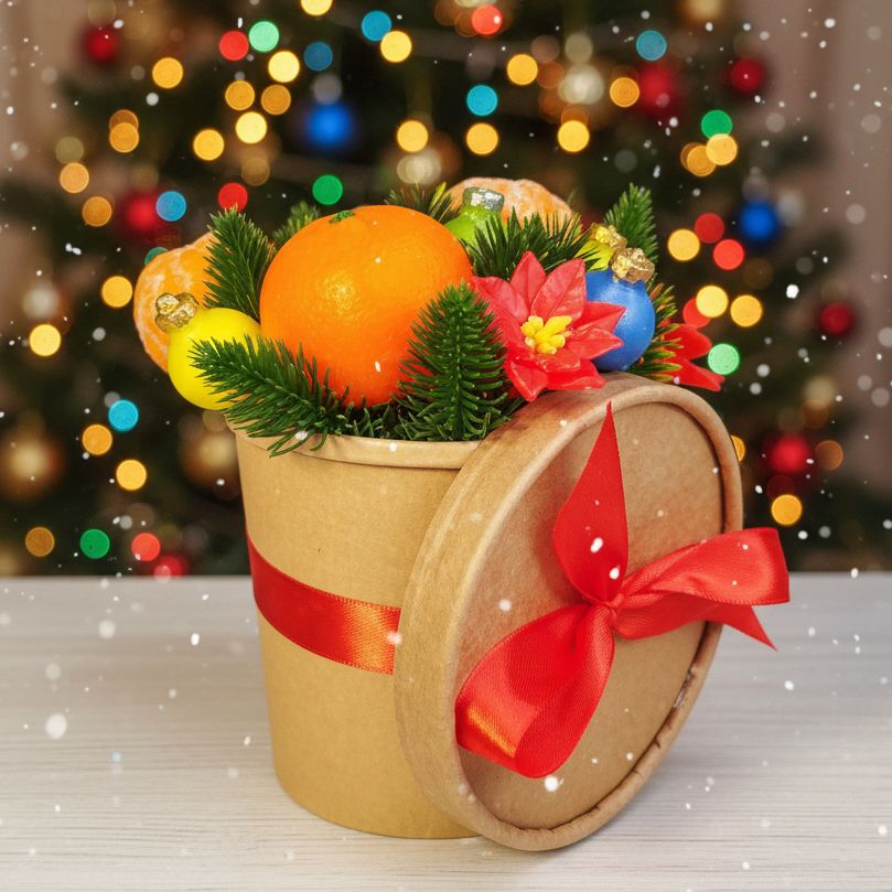 Шишки, шарики, мандаришки! Новогодняя композиция из мыла ручной работы в крафтовом стаканчике.Букет упакован в пакет с жестким дном, сверху перевязывается бантом.