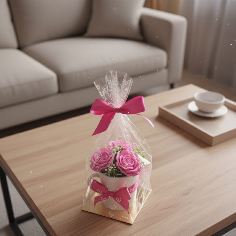 А какой из этих трёх розовых бутонов исполнит ваше желание? Нежные розы в крафтовом стаканчике.