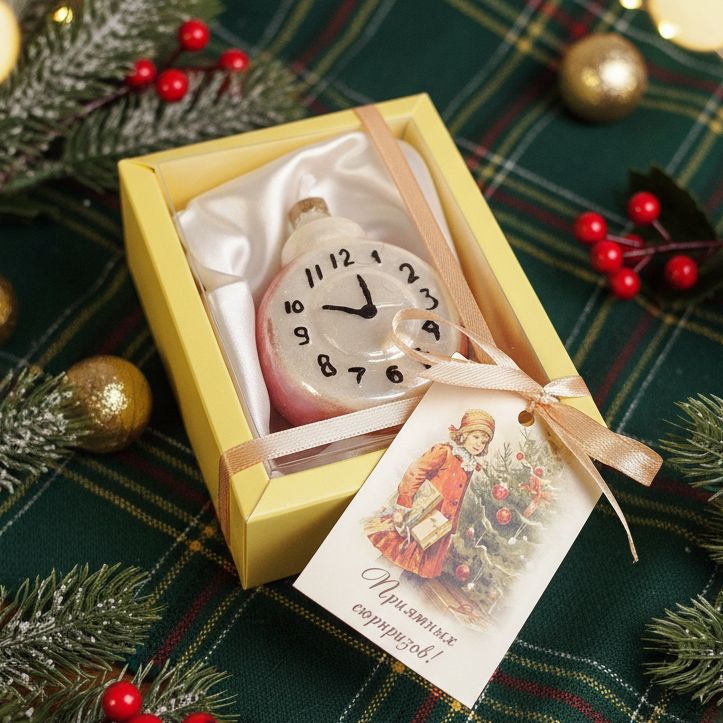 Помните, как в детстве вы наряжали ёлку сокровищами из бабушкиного сундука, осторожно доставая ёлочные игрушки из коробки? Те самые стеклянные игрушки, бережно хранимые и передаваемые из поколения в поколение. Каждая из них — маленькая история. У кого тоже была такая игрушка на ёлке? Очаровательная ёлочная игрушка-свеча в виде часиков. Создает волшебную атмосферу и отсчитывает моменты до Нового года. Тик-так до Волшебства! Полностью ручная работа и 100% натуральный пчелиный воск.