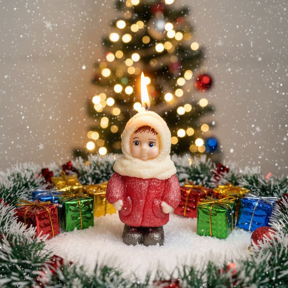 Осторожно, эта свеча вызывает приступы ностальгии и желание срочно пересмотреть старые новогодние огоньки! Наша милая формовая девочка из 70-80-х готова добавить тепла и уюта в ваш праздник. Говорят, если зажечь её, можно загадать желание, и оно обязательно сбудется. Главное, чтобы желание было из той эпохи – например, новый калейдоскоп или жвачка "Love is...". А если нет, то хотя бы просто насладиться теплом и атмосферой детства!