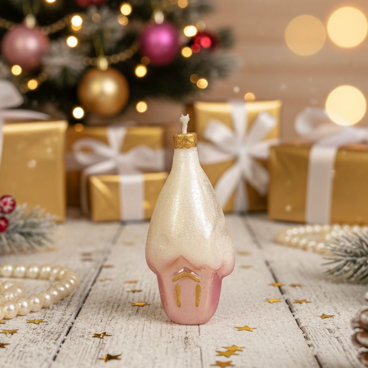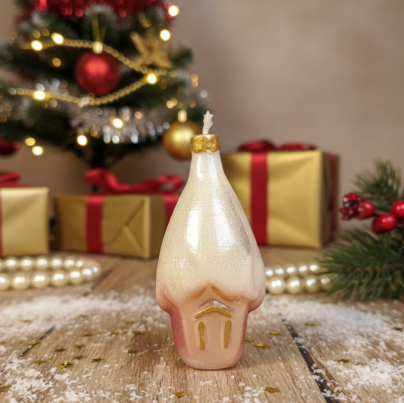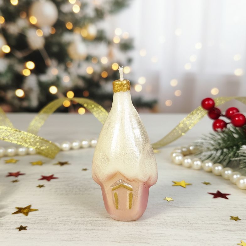 Помните те времена, когда ёлочные игрушки были такими уютными, что хотелось в них жить? Мы не обещаем вам ипотеку в этом домике, но зато обещаем тепло, уют и целую кучу ностальгии! Главное, не пытайтесь в него переехать, он для души, а не для прописки. Свеча изготовлена из натурального пчелиного воска. Ручная работа.