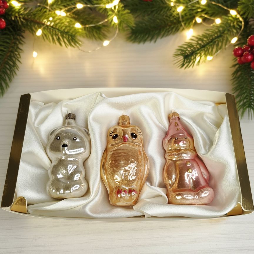 Наш новогодний набор свечей "Медвежонок, Сова и Клоун" создан для тех, кто ищет что-то особенное. Созданные по мотивам любимых ёлочных игрушек СССР, эти три друга – озорной Медвежонок, мудрая Сова и весёлый Клоун – станут не просто украшением, а настоящим порталом в добрые воспоминания. Каждая свеча вручную сделана с любовью, чтобы подарить вашему дому уют, тепло и неповторимый шарм ушедшей эпохи. Зажгите их, и позвольте воспоминаниям окутать вас.