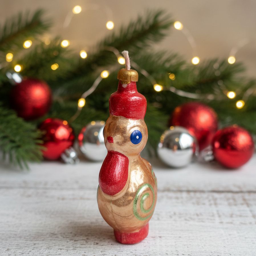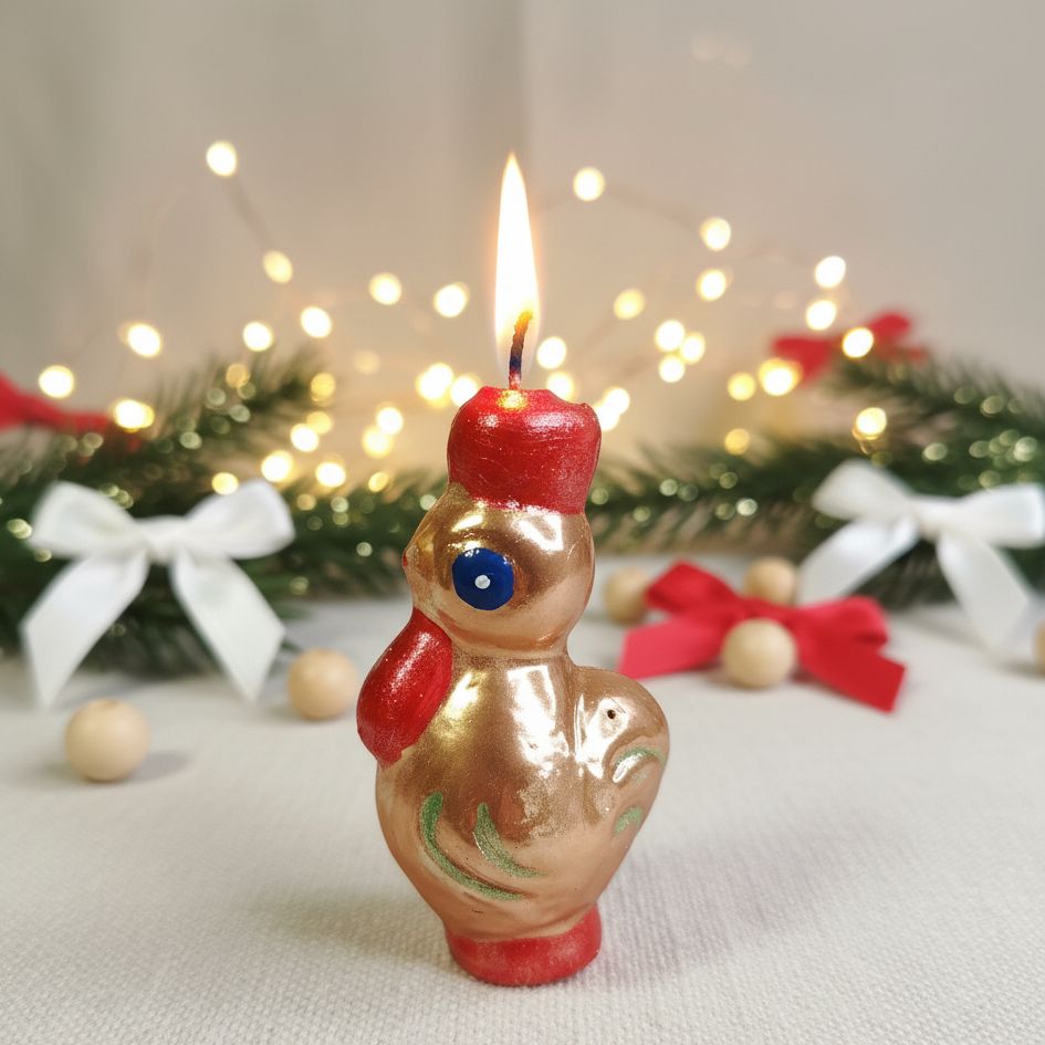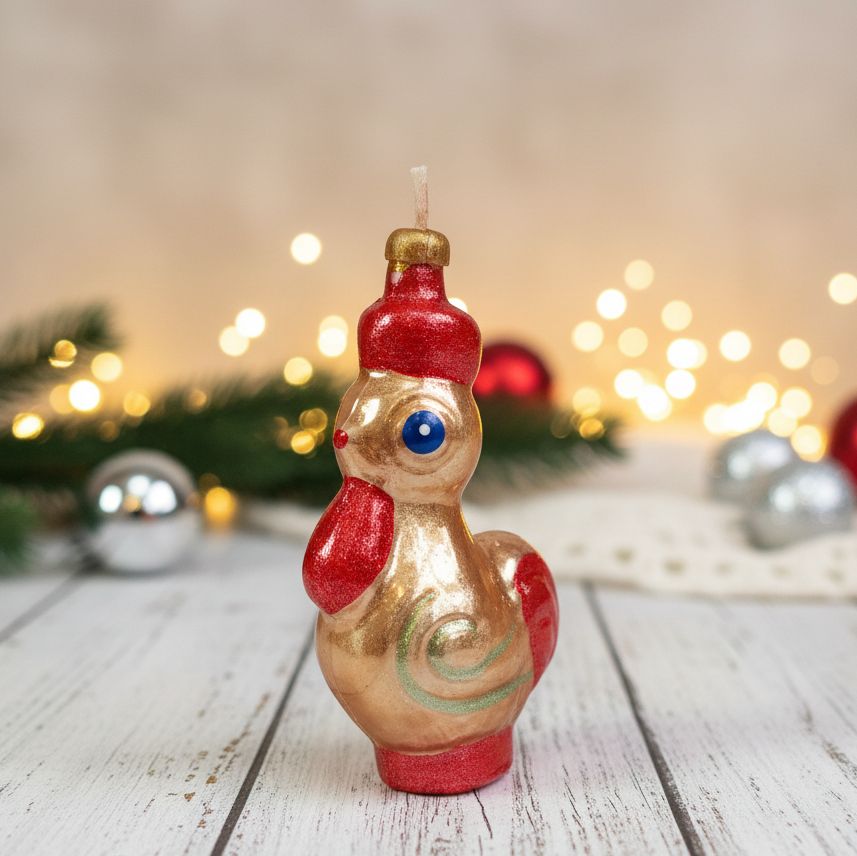 Кто сказал, что петухи не могут быть золотыми? Как вам этот красавчик? Не просто новогодняя игрушка, а ещё и свеча, дающая тепло и уют. Этот золотой петушок – настоящая находка для праздничного настроения. Пусть он принесёт в ваш дом немного волшебства! А у вас есть любимые старые ёлочные игрушки? Делитесь в комментариях!