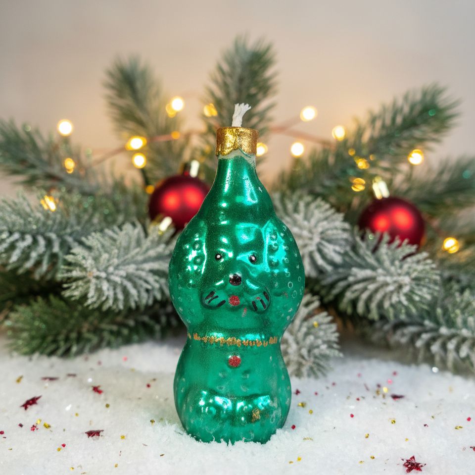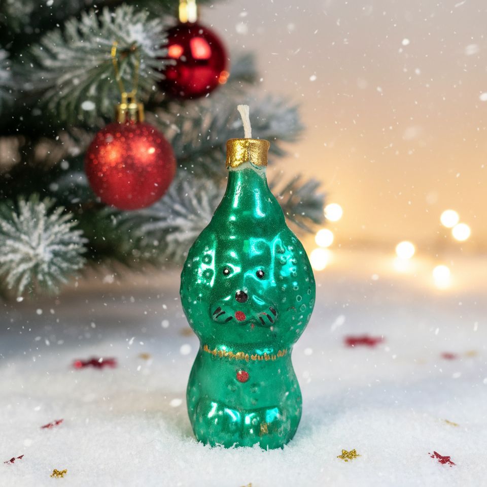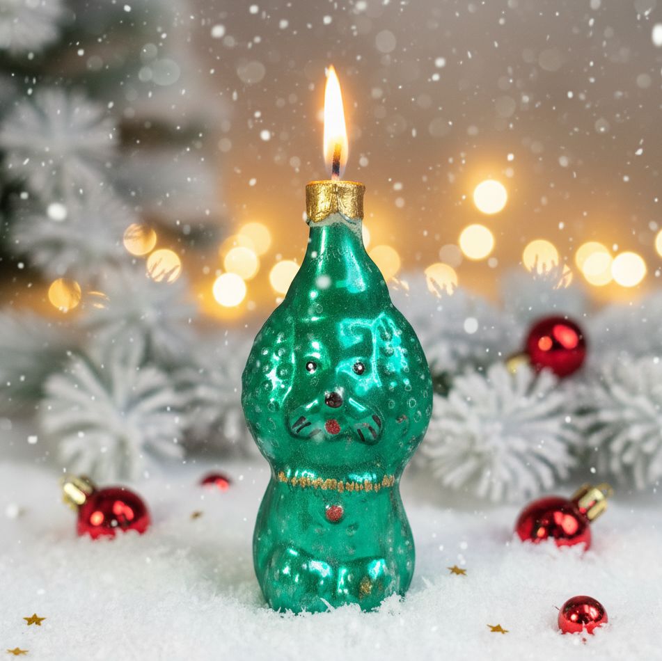 Мы воплотили эту озорную фантазию в нашей новой новогодней свече, созданной по мотивам любимых ёлочных игрушек СССР 60-80х годов. Этот очаровательный Пудель зелёного цвета готов принести в ваш дом смех, тепло и немножко хулиганства. Пусть этот зелёный красавец станет звездой вашего праздника, а этот Новый год пусть будет ярким и непредсказуемым!