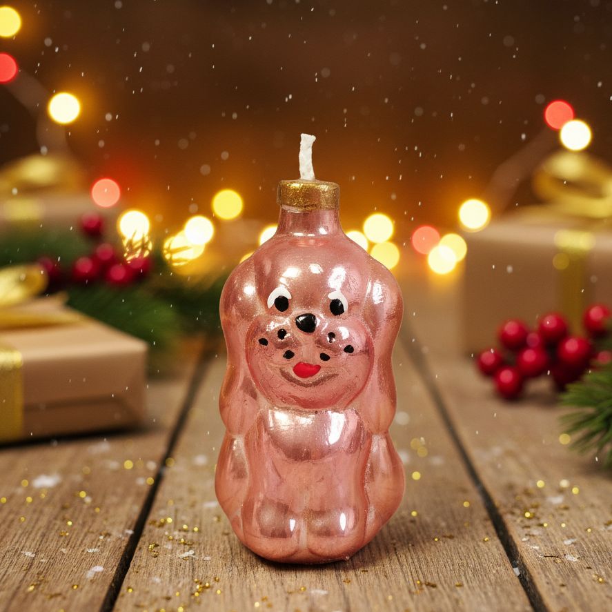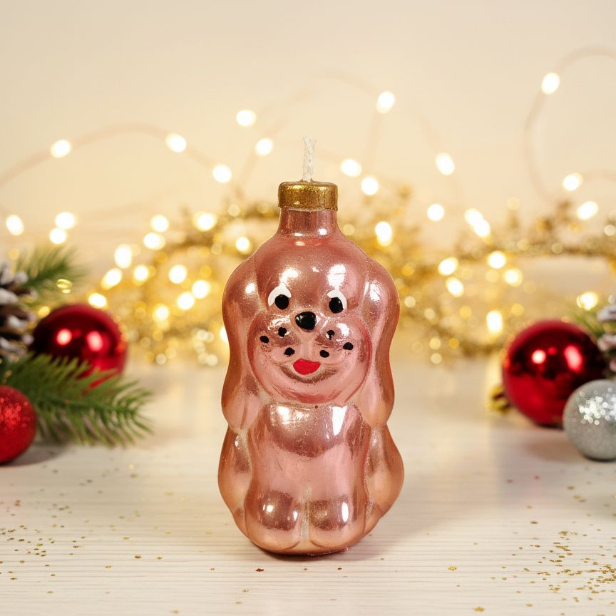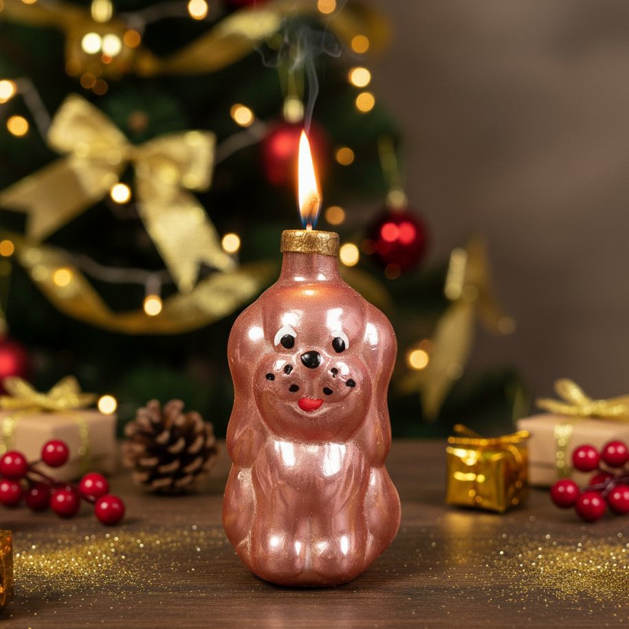 А вы помните, как на советских ёлках висели такие вот чудные песики? Этот щеночек сбежал прямо из 70-х или 80-х, чтобы зажечь ваш Новый год! Он точь-в-точь как та самая игрушка, которую вы, возможно, находили под ёлкой у бабушки (и возможно, даже пытались погрызть!). Можно зажечь этот кусочек ностальгии и смотреть, как плавится время... Только не пытайтесь его выгуливать, он не очень любит сквозняки.