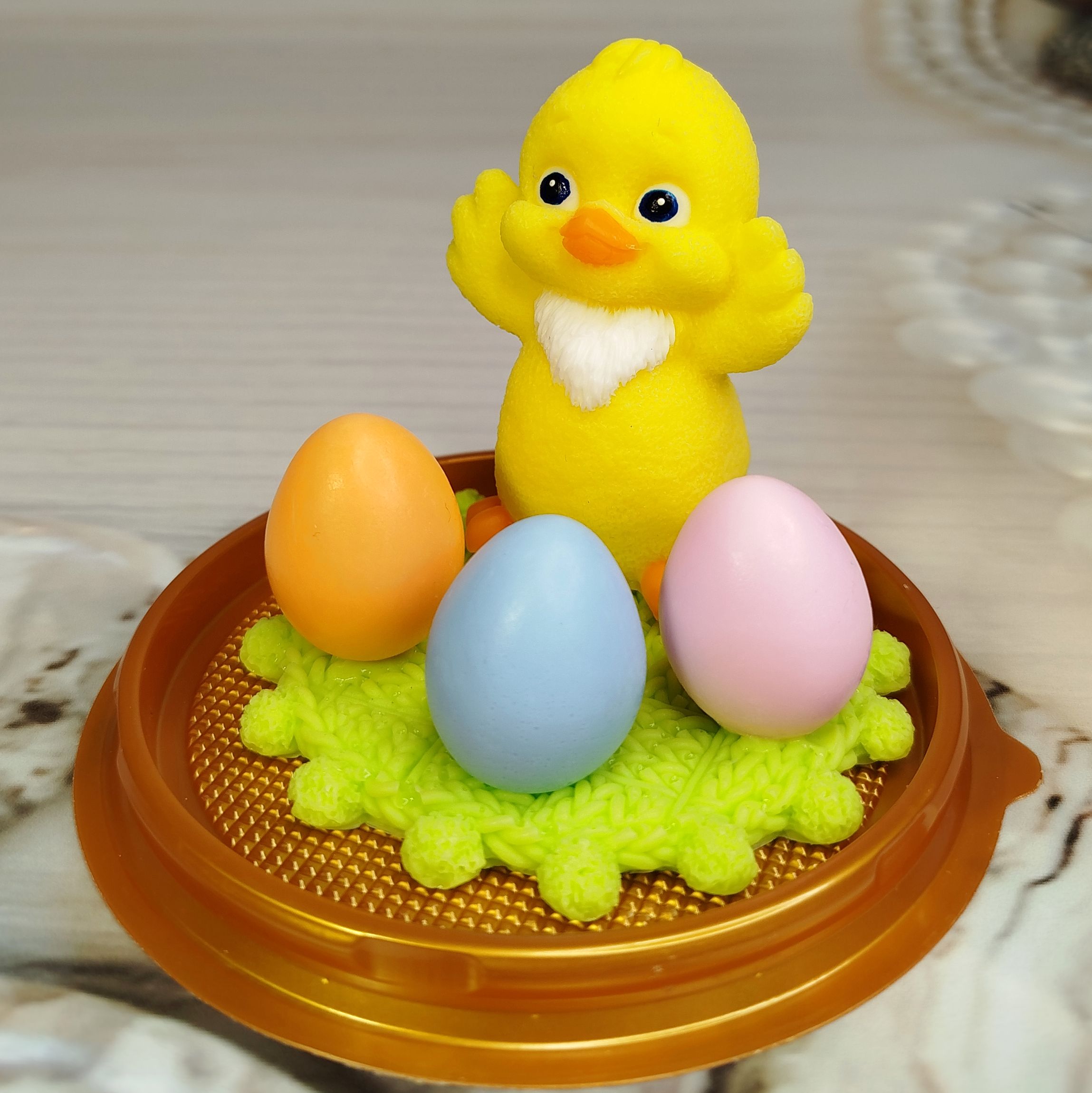 Этот милый пушистый цыпленок с разноцветными яичками из мыла принесет радость и улыбки в ваш дом. Отличный подарок для детей и взрослых, который создаст атмосферу праздника! Пасхальный цыплёнок — один из пасхальных символов и украшений. Наряду с пасхальными яйцами, являются символом плодородия и новой жизни, как в языческой, так и христианской традициях. Так как зимой цыплята не появляются, поэтому они также являются символом весны. Пасхальный цыпленок более всего популярен в Европе. Подарите радость на Пасху!